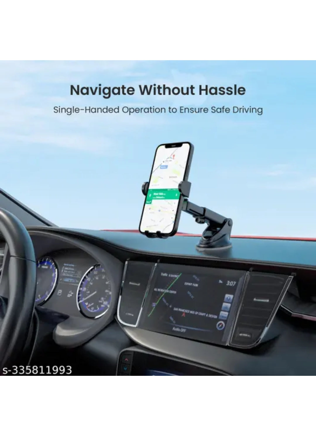 Strong Suction Base: High-quality suction cup for firm attachment to dashboards, windshields, or flat surfaces.