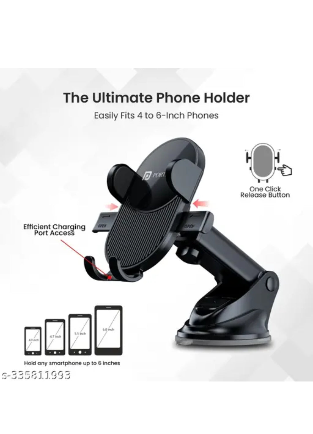 Portronics Clamp M Car Mobile Holder with Adjustable Arm & Suction Mount